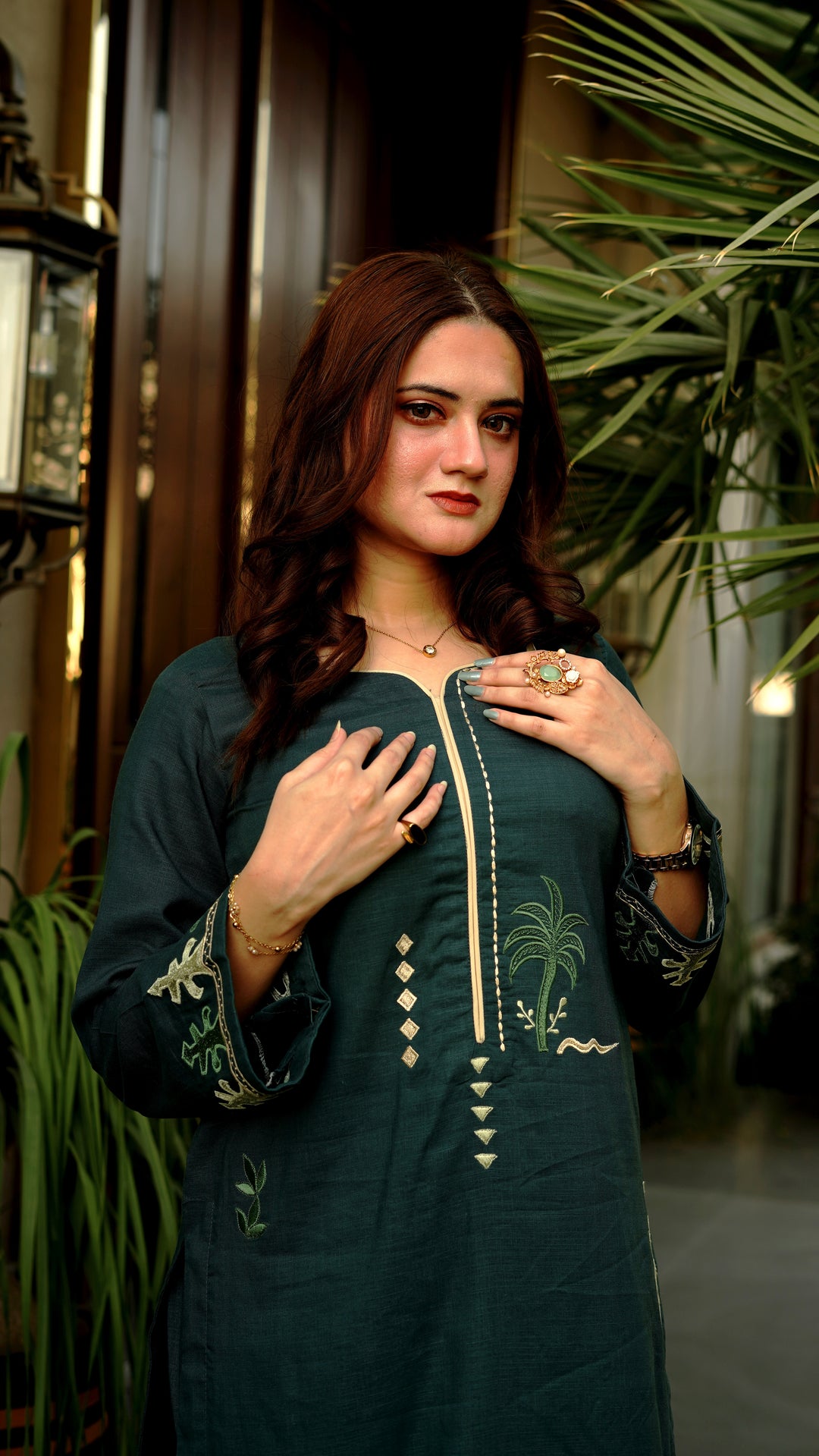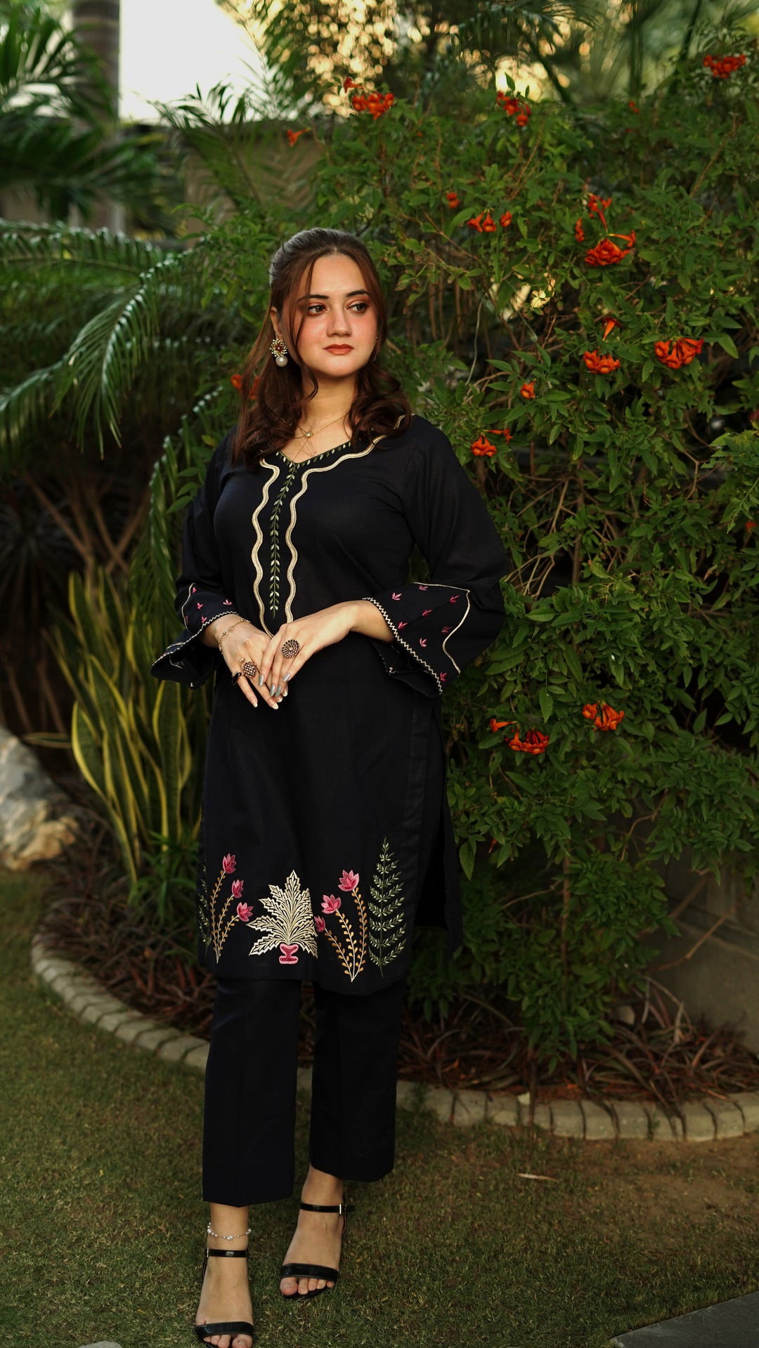 Selected customized on the product page while selecting the size for your order. Mention your measurements in the section provided on the product page. Once you have placed an order, you may also send an email to info@ninesevenone.store with reference number of your order and attach your measurements and all the wish lists.